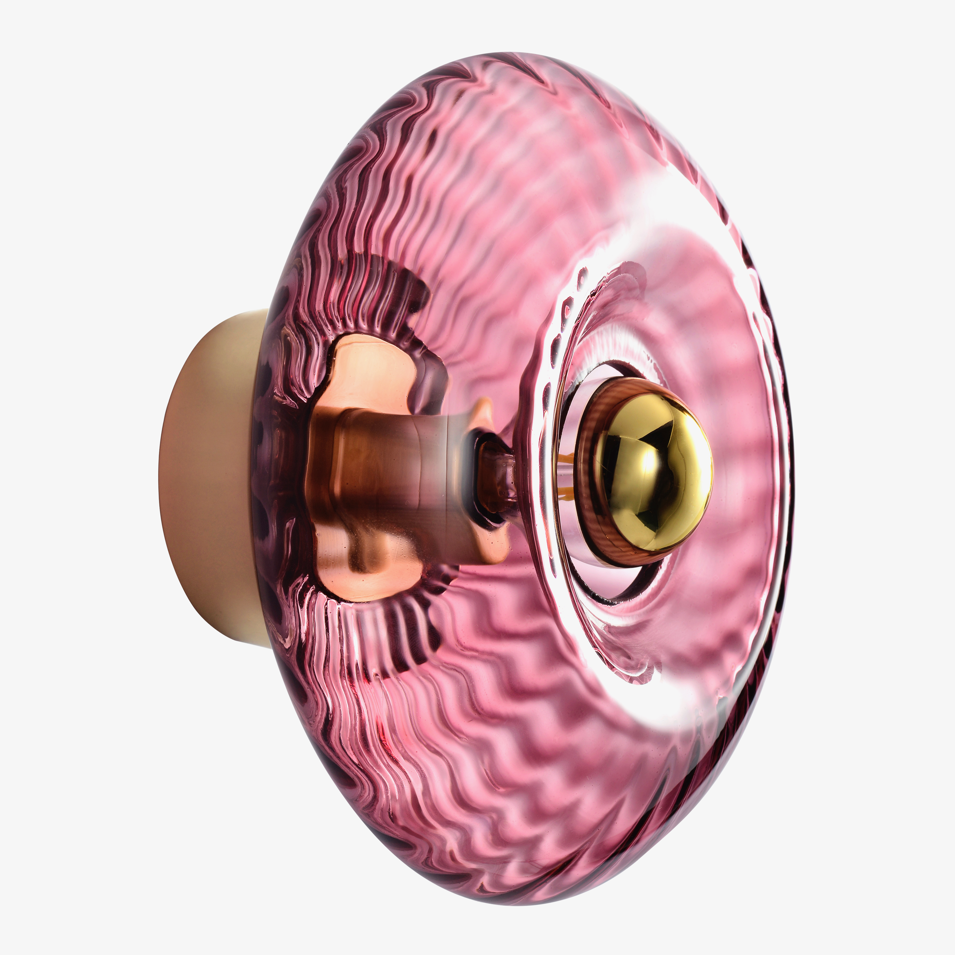 'Grace' lampe fra franske Elements Lighting. Farven er 'amethyst' og er en mørk lyserød fin farve, som giver et smukt skær i samme farvenuance. Lampen kan både monteres på væggen eller i loftet. Lampen kommer i flere forskellige farver.