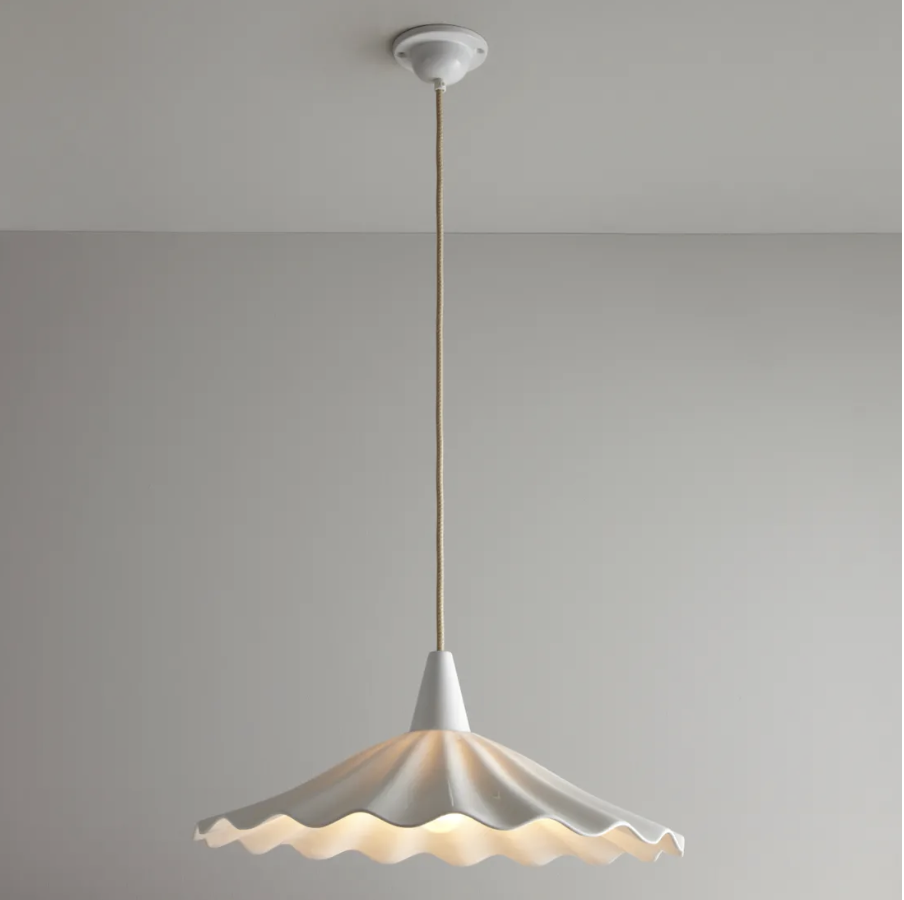 Denne smukke Christie pendel er håndlavet af benporcelæn med en lampeskærm, der er inspireret af de bølgende havbølger. Denne iøjnefaldende pendel, fås enten som justerbar (rise and fall) eller almindelig.