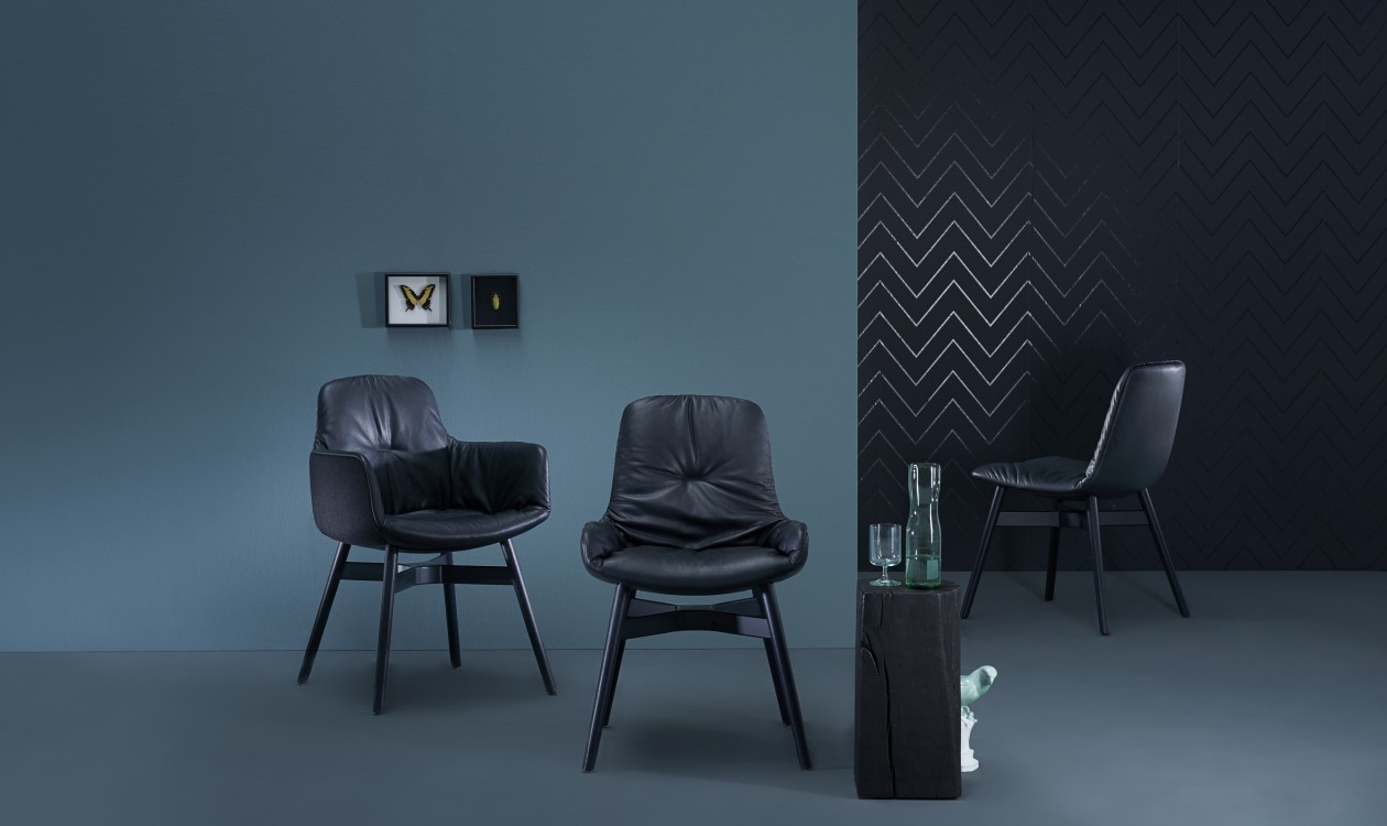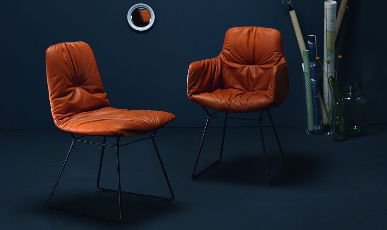 Leya er en perfekt formet stol med en elegant, fast polstret ydre skal på et spinkelt stålstel eller på en solid træramme. Med sin hyggelige blanding af materialer og farver giver Leya-serien alle muligheder for et unikt designet møbel.