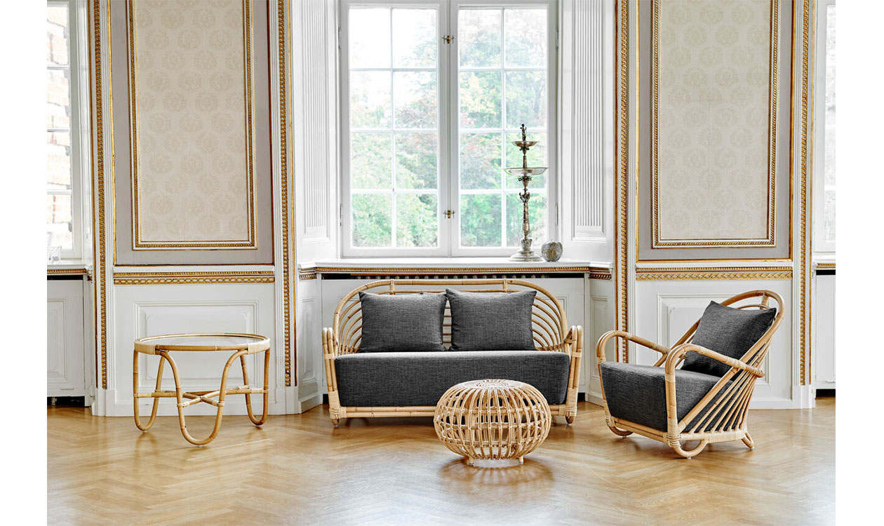 Den elegante og behagelige sofa er et smukt bidrag til ethvert moderne hjem, og tilføjer et naturligt element. Faktisk var den oprindelige Charlottenborg-stol efter sigende Arne Jacobsens foretrukne lænestol i hans berømte sommerhus Knarken ved Sejrøbugten. Sofaen er lavet i materialet Manau & Tohiti rattan.