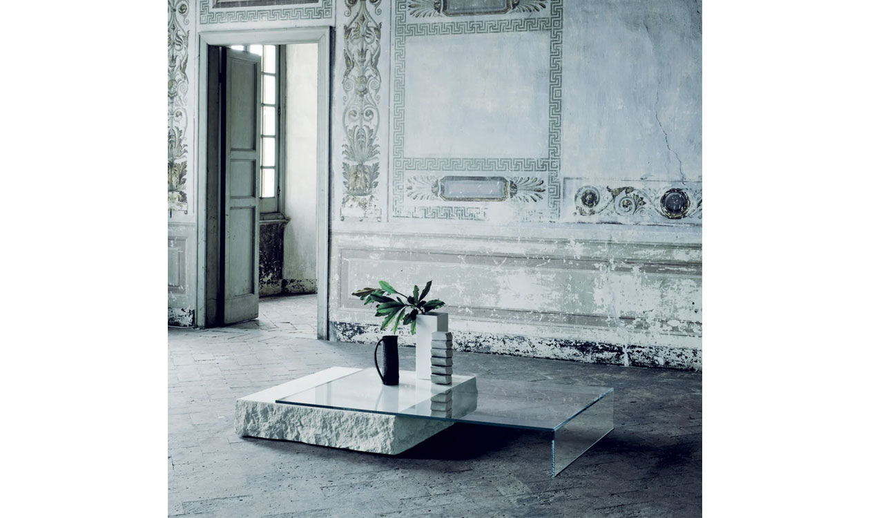 Det smukke elegante Terraliquida bord er designet af den spanske arkitekt Claudio Silvestrin. Bordet er produceret af naturlig kalksten og let glas, og hvilket giver designet et let, rent og lukseriøst udtryk.