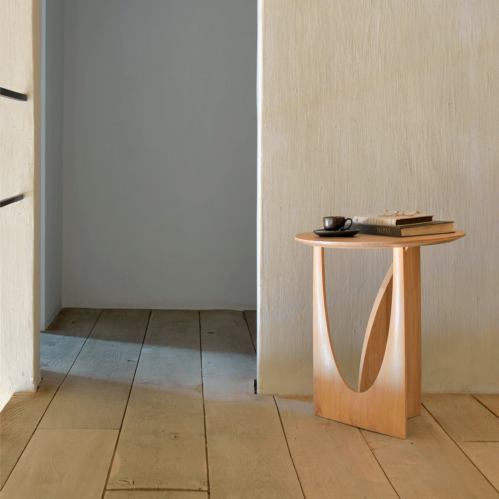 Ved at krydse geometriske former og skabe interaktion mellem dem, fandt designer Alain van Havre noget nyt. Dette sidebord repræsenterer hans kærlighed til bevægelse og formgivning. Fra alle vinkler ser sidebordet ikke kun anderledes ud, det bliver også anderledes. Geometric sidebordet fås i både eg, sortbejset eg og teak, og er det perfekte bord til at have ved siden af lænestolen, for enden af sofaen, eller endda som sengebord. Ethnicraft har i mere end 20 år, skabt autentiske, nutidige og tidsløse møbler i solidt træ. Enestående håndværk er fundamentet for brandet, som drives af innovation og kvalitet.