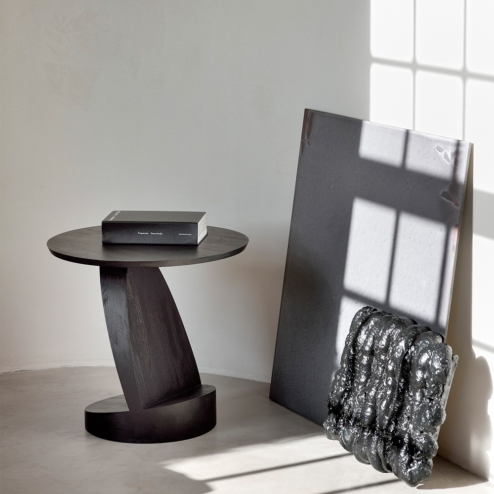 Én form, tusinde muligheder. Da Alain van Havre skabte dette geometriske sidebord, legede han rundt med simple geometriske former, og pludselig opstod det skulpturelle Teak Fin bord. Dette sidebord repræsenterer hans kærlighed til bevægelse og formgivning. Teak Fin sidebordet er det perfekte bord til at have ved siden af lænestolen, for enden af sofaen, eller endda som sengebord.