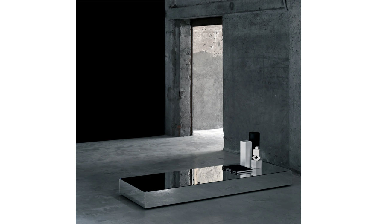 I Massi tavoli bassi bordet fra Glas Italia er et moderne lavt spejlbord. Bordet fås i 4 forskellige størrelser, og har alle små hjul under.