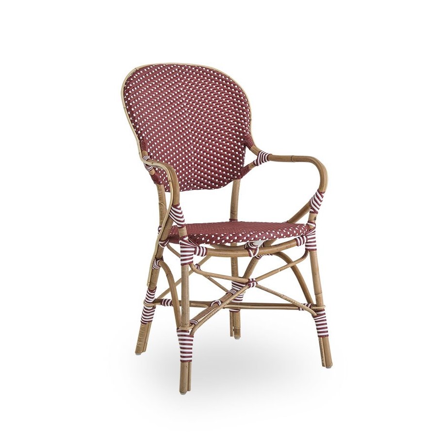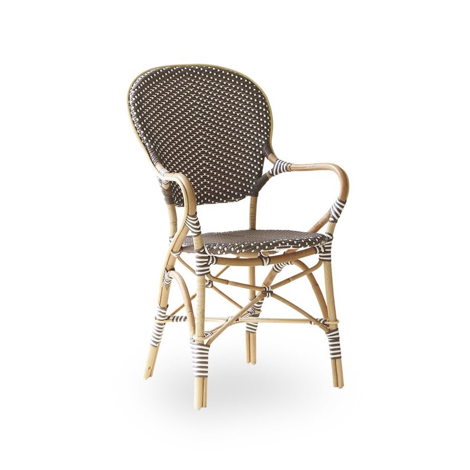 Isabell stolen har armlæn, hvilket giver en ekstra støtte og komfort. Stolen er en raffineret spisebordsstol, som er designet til brasserier, caféer og restauranter, men den er også velegnet til det almindelige hjem. Møblerne er lavet til indendørs brug, men kan også anvendes under halvtag og parasol udendørs. Her er det dog vigtigt at møblerne har mulighed for at blive helt tørre, hvis de bliver udsat for fugt. Stolen er designet og produceret af Sika-Design.
