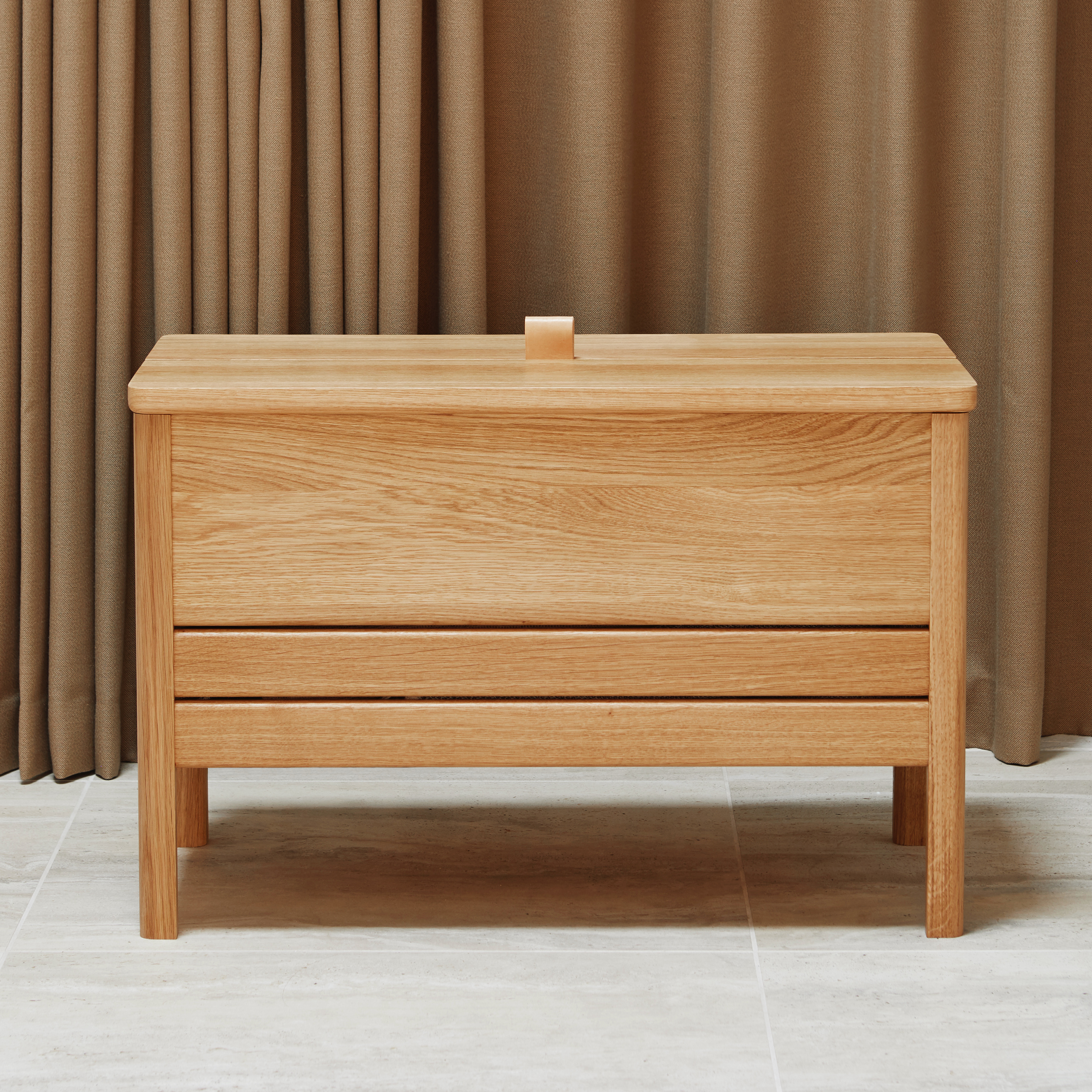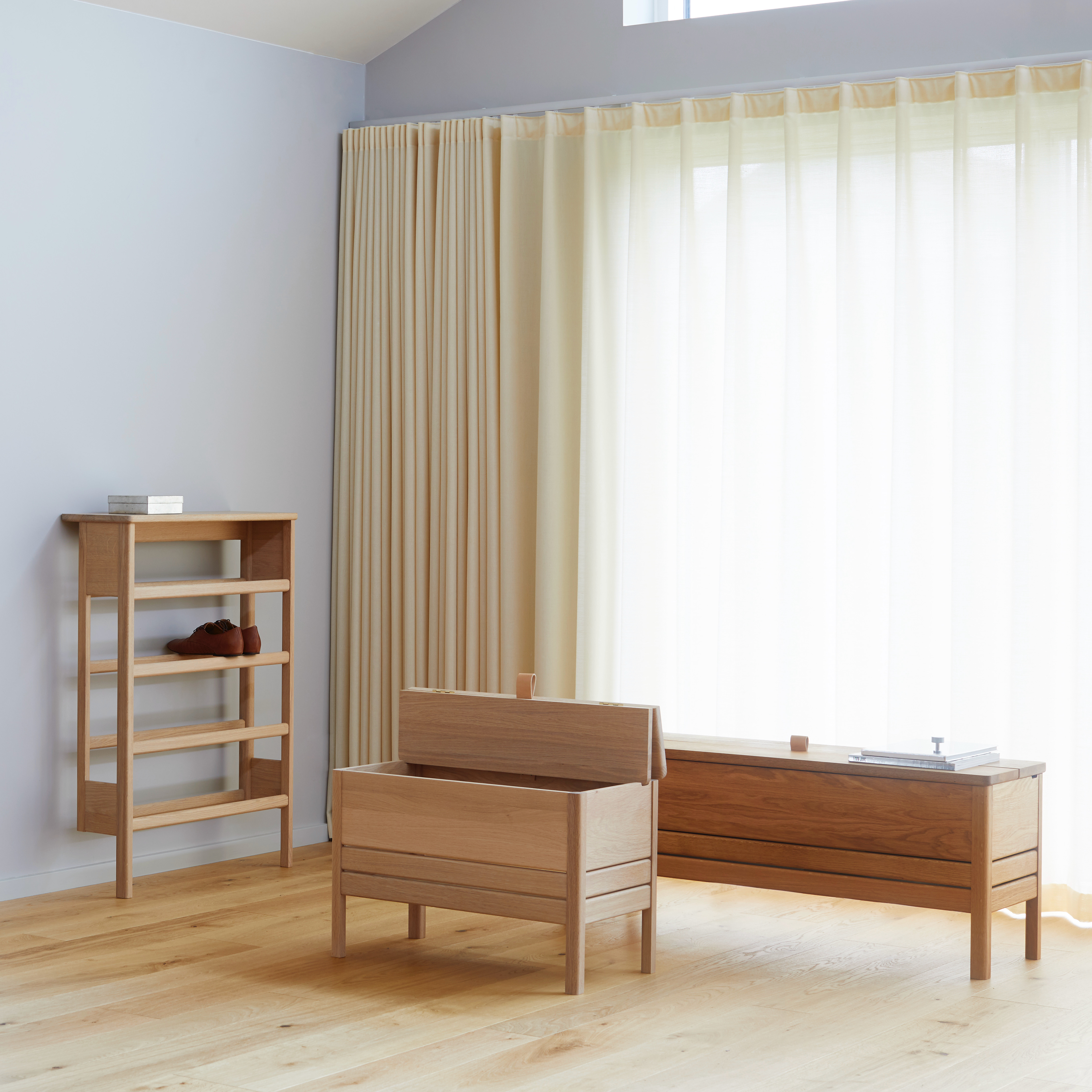 Den fantantastiske A Line bænk fra danske Form & Refine er en opdateret version af den klassiske entré-bænk, hvor funktionalitet møder ren form. En solid og alsidig bænk med lettere, let reducerede dimensioner og minimalistisk attitude. Bænkens låg løftes via et lille læderhåndtag, og konstruktionen holder låget på plads, mens den bruges. A Line bænken er en alsidig bænk, som kan benyttes som et selvstændigt møbel i en entré, i soveværelset eller ethvert opholdsområde.