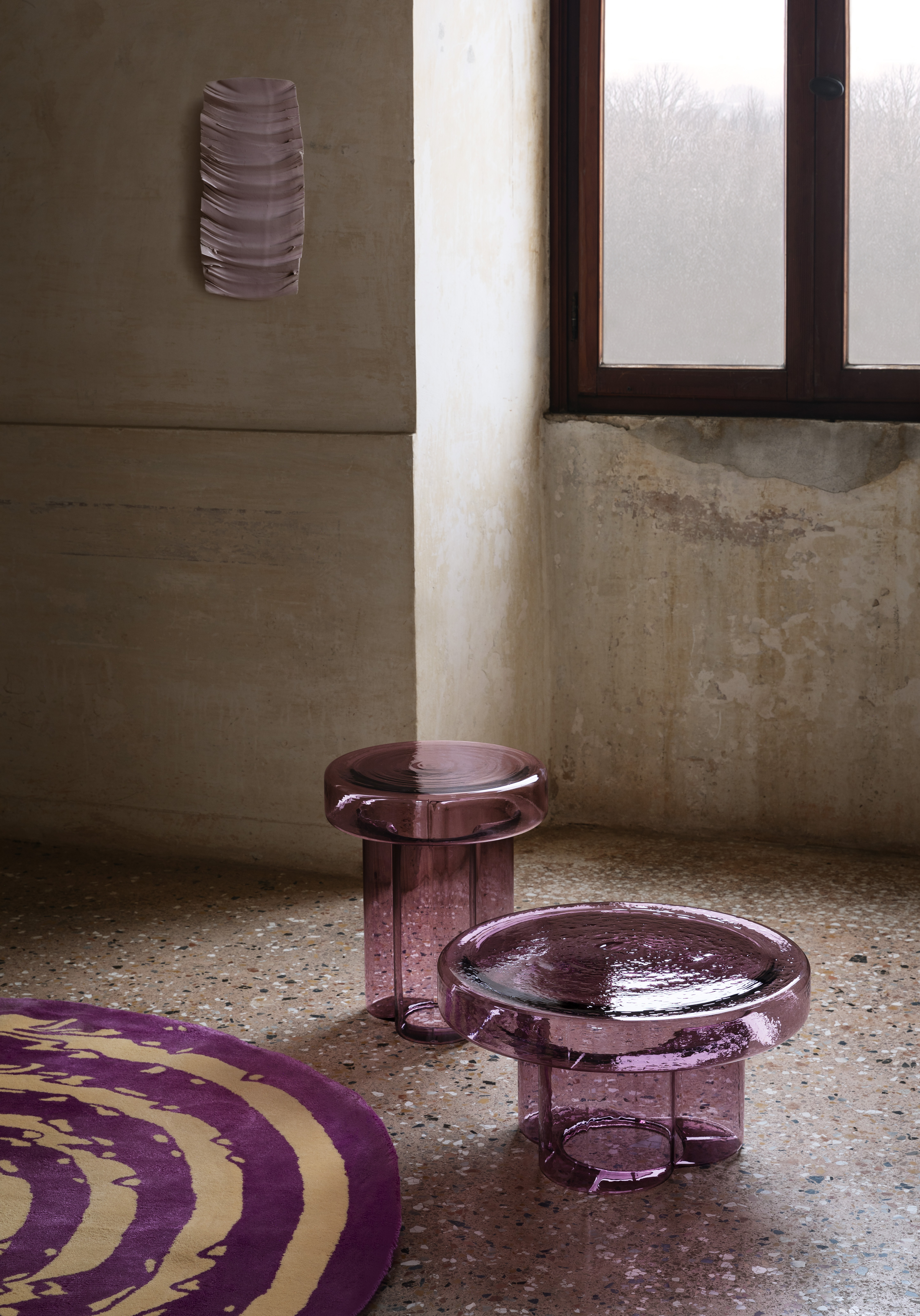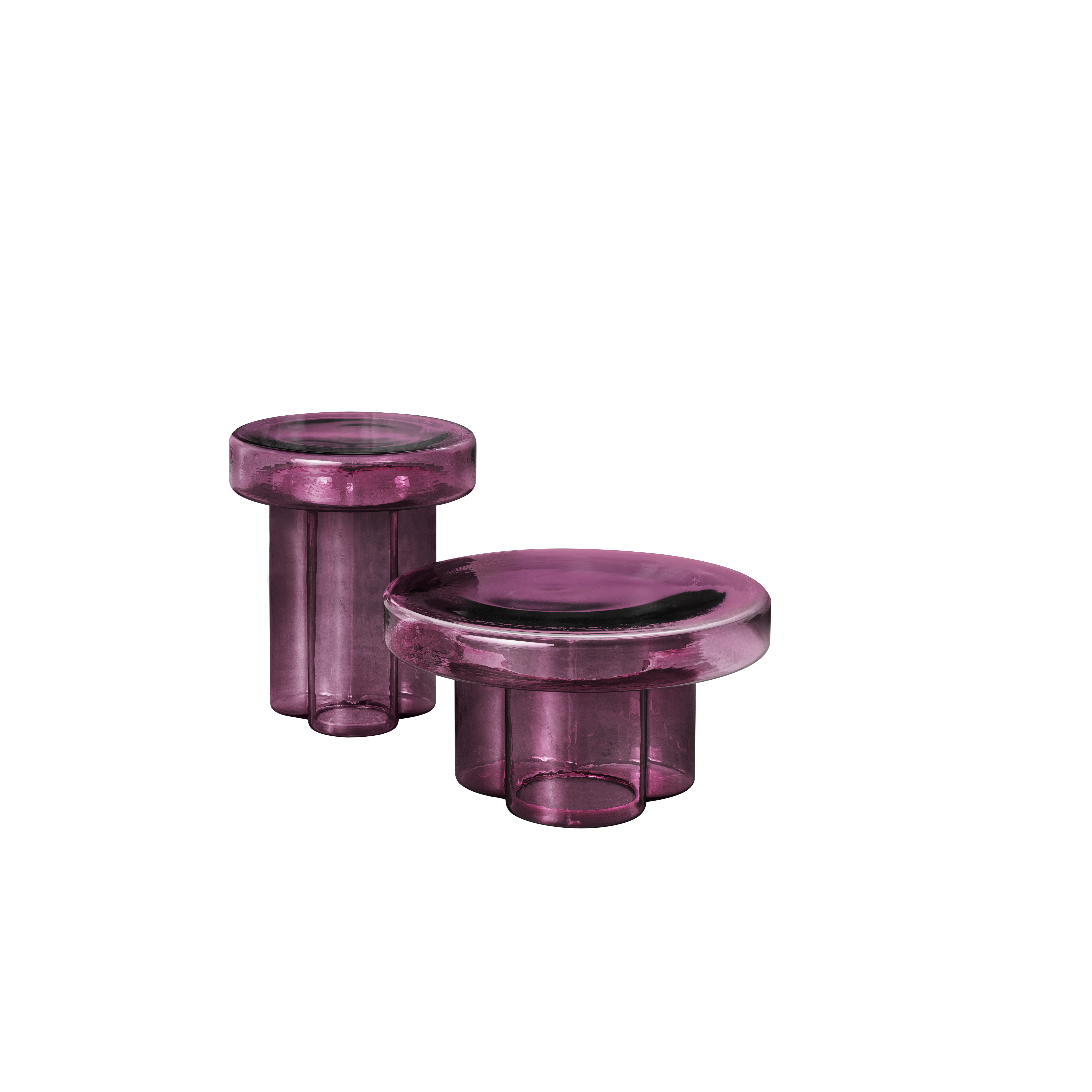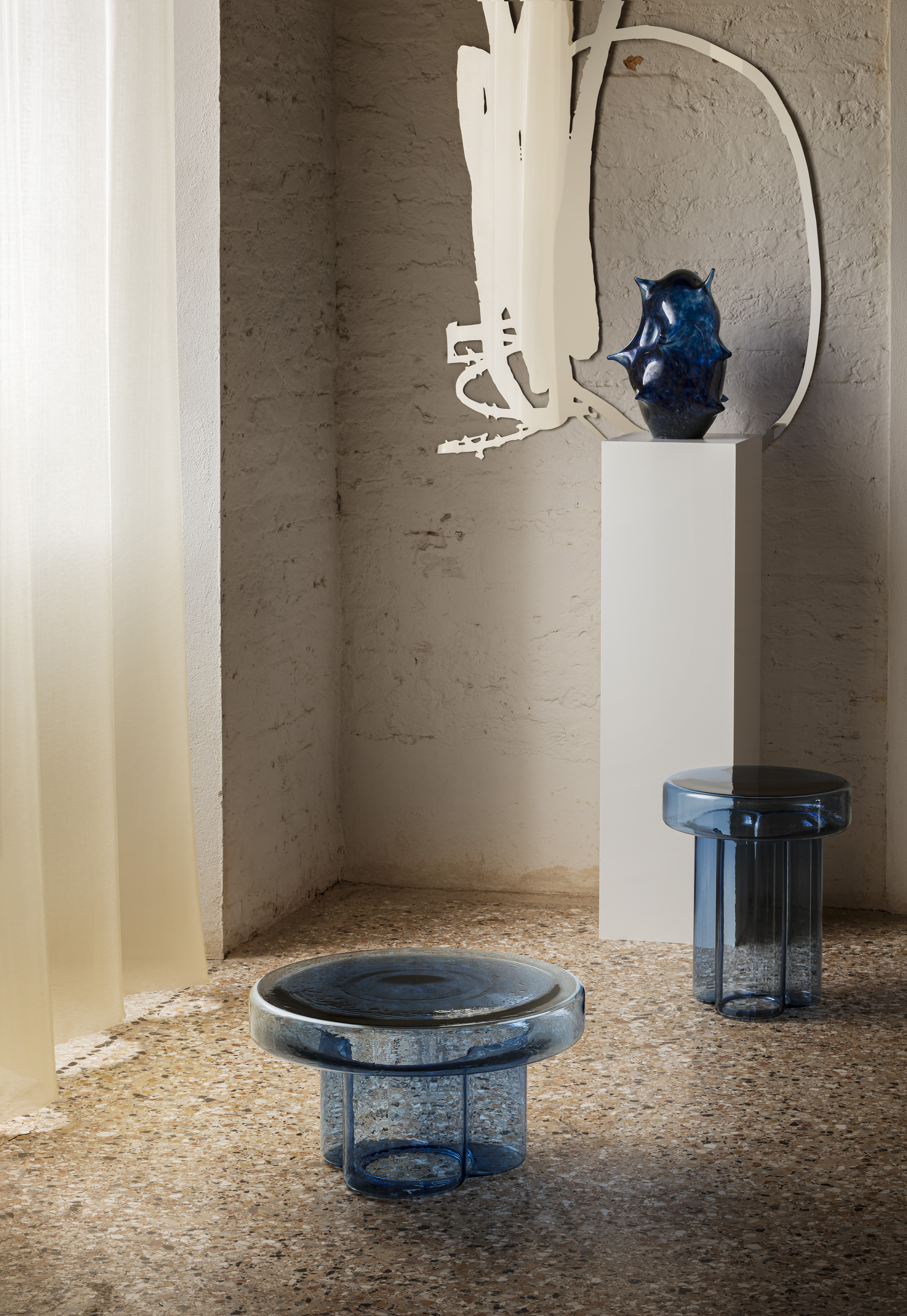 Soda-bord fra italienske Miniforms. Bordet er lavet af mundblæst glas, og derfor er hvert et bord unikt. Bordet kan bruges som sofa- og sideborde, og kan matches sammen med et større bord, for det perfekte match.
