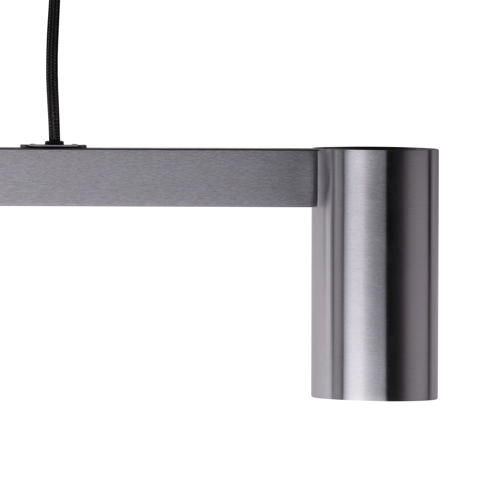 Long Kennedy Pendant er en klassisk og enkel pendellampe i stål eller metal. Lampen består af 3, 4 ,5 eller 6 spots, der sidde side om side sidder placeret på et en flad stang af stål. Lampen lader lyset falde smukt over køkken øen, spisebordet eller arbejdsbord.