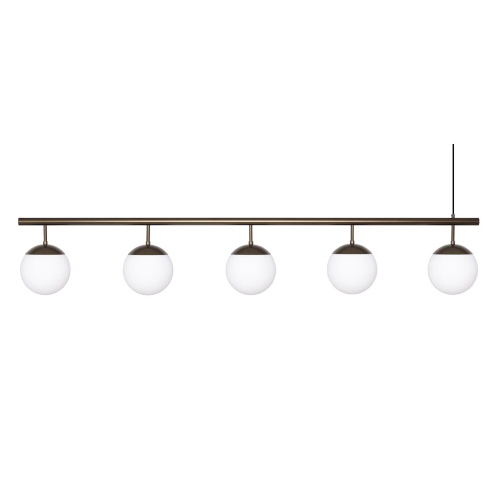 Long Lord 5 pendel fra RUBN er en nytænkt, eksklusiv udgave af den klassiske glaskugle pendel med 5 smukke glaskugler på række. Pendellampen oser af lækkert håndværk og godt design, og vil hænge smukt over et spisebord, over køkken øen eller i et mødelokale.