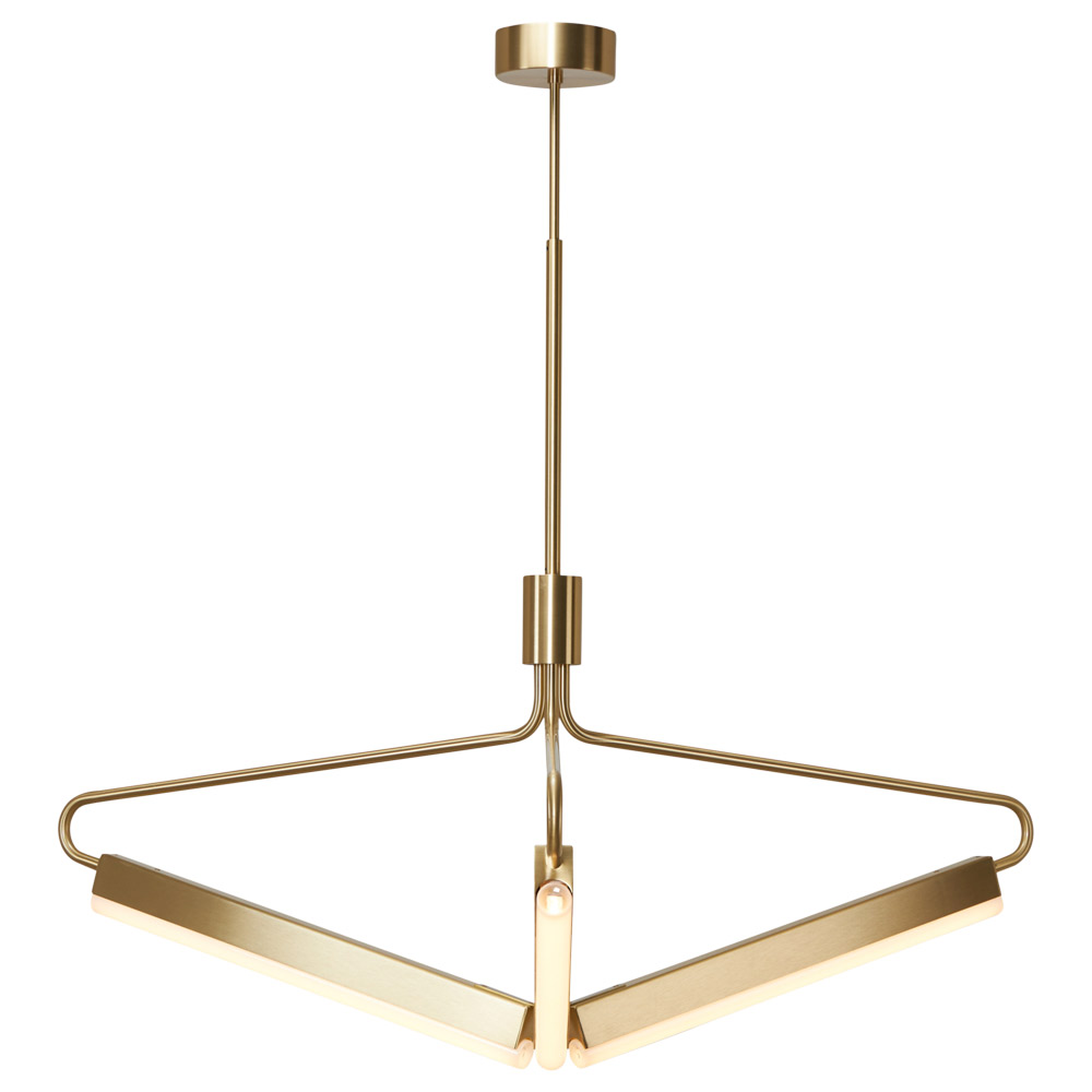 Den fine og moderne Angel 3 bred lysekrone - 500, er designet af den svenske designer Niclas Hoflin for lampeproducenten Rubn. Angel lysekronen fås både i messing og stål, og lampen oser af unikt design og godt håndværk. Angel passer perfekt ind i enhver indretning, og er særligt smuk i en entré/forhal eller over spisebordet. Angel lampens tre lysekilder er placeret rundt om et center, og du kan vælge mellem 3 forskellige højder afhængigt af det rum, du ønsker, at lampen skal monteres i. Højden på lampen er fra loftrosetten til bunden af lampen, og højden kan justeres ved hjælp af en teleskopstang på to af lampestørrelserne. Lampens bredde i bunden er 110 cm.