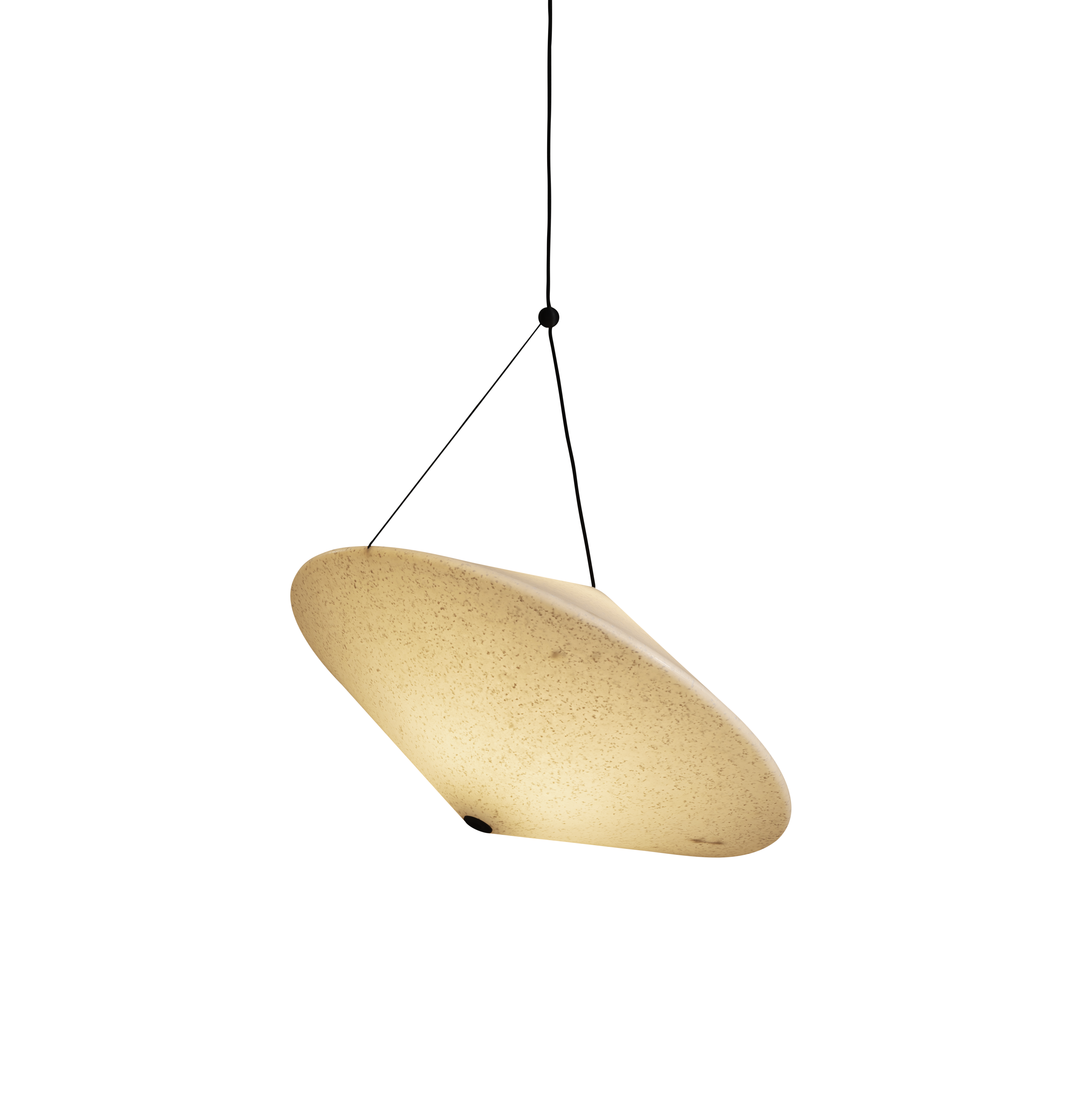 Rificolona hænger elegant fra en tynd snor og bringer en legende og kreativ stemning med sig. Lampeskærmen, der primært er lavet af genbrugt polyethylen, kan rotere og interagere med lyset. Rificolona svæver let over dine møbler og justerer sin hældning efter behov eller for at skabe den ønskede belysning på forskellige tidspunkter af dagen.