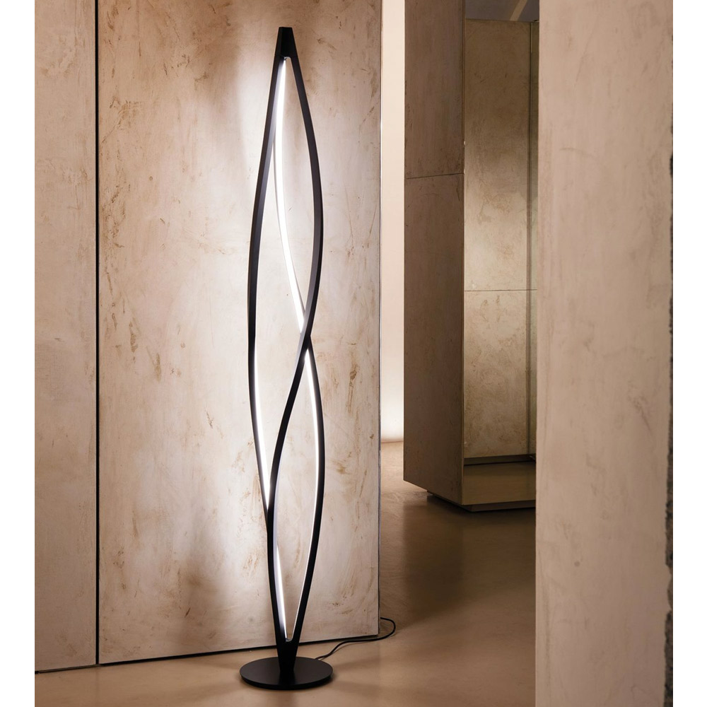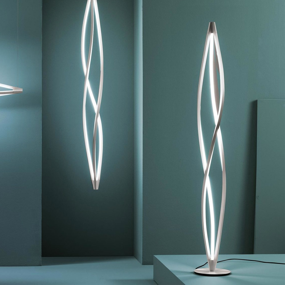 In The Wind gulvlampen er designet af Arihiro Miyake for NEMO. Den unikke og moderne lampe har en integreret dæmpbar LED lyskilde, og kan fås i flere forskellige finish: Sort, hvid, titan grå og gulvfarvet.