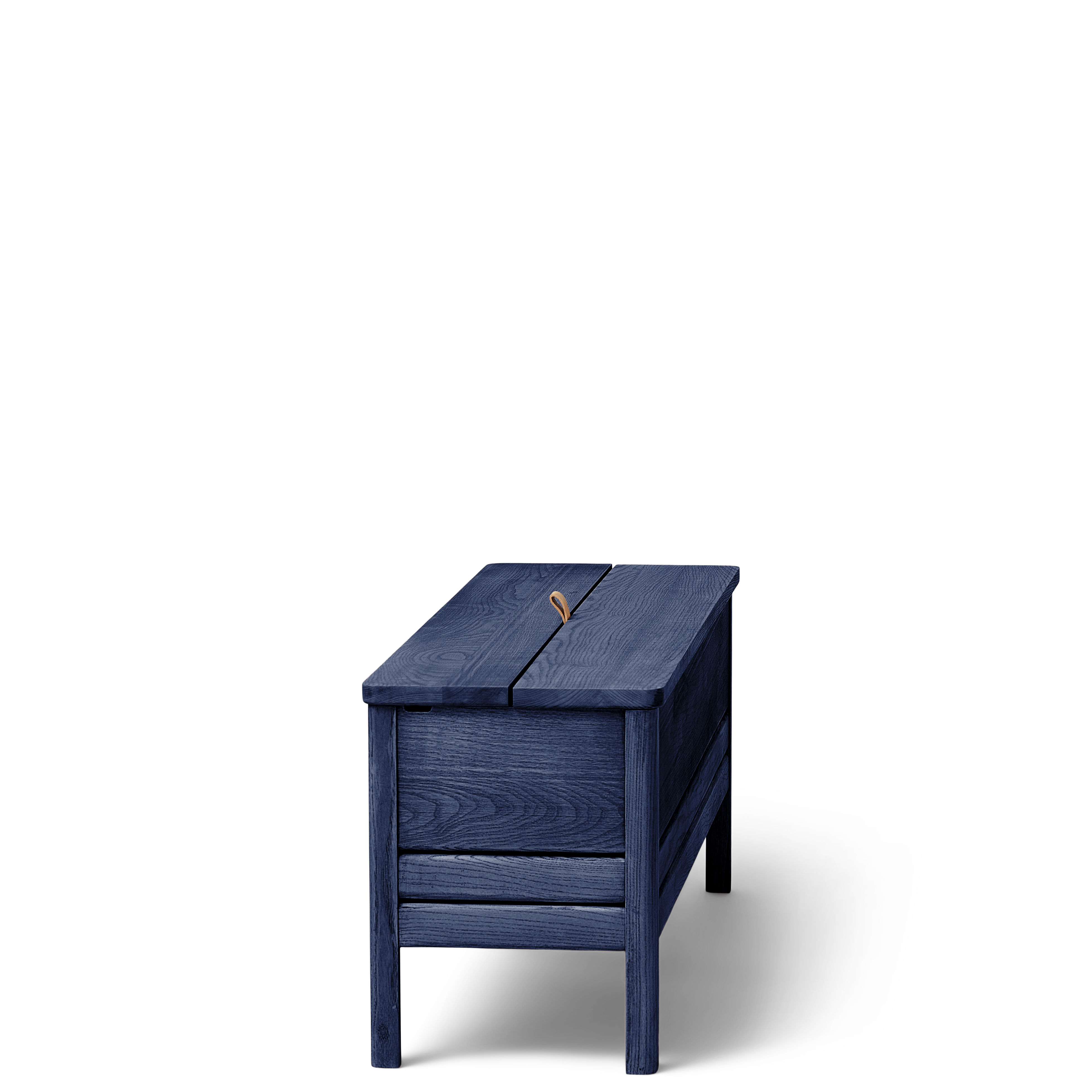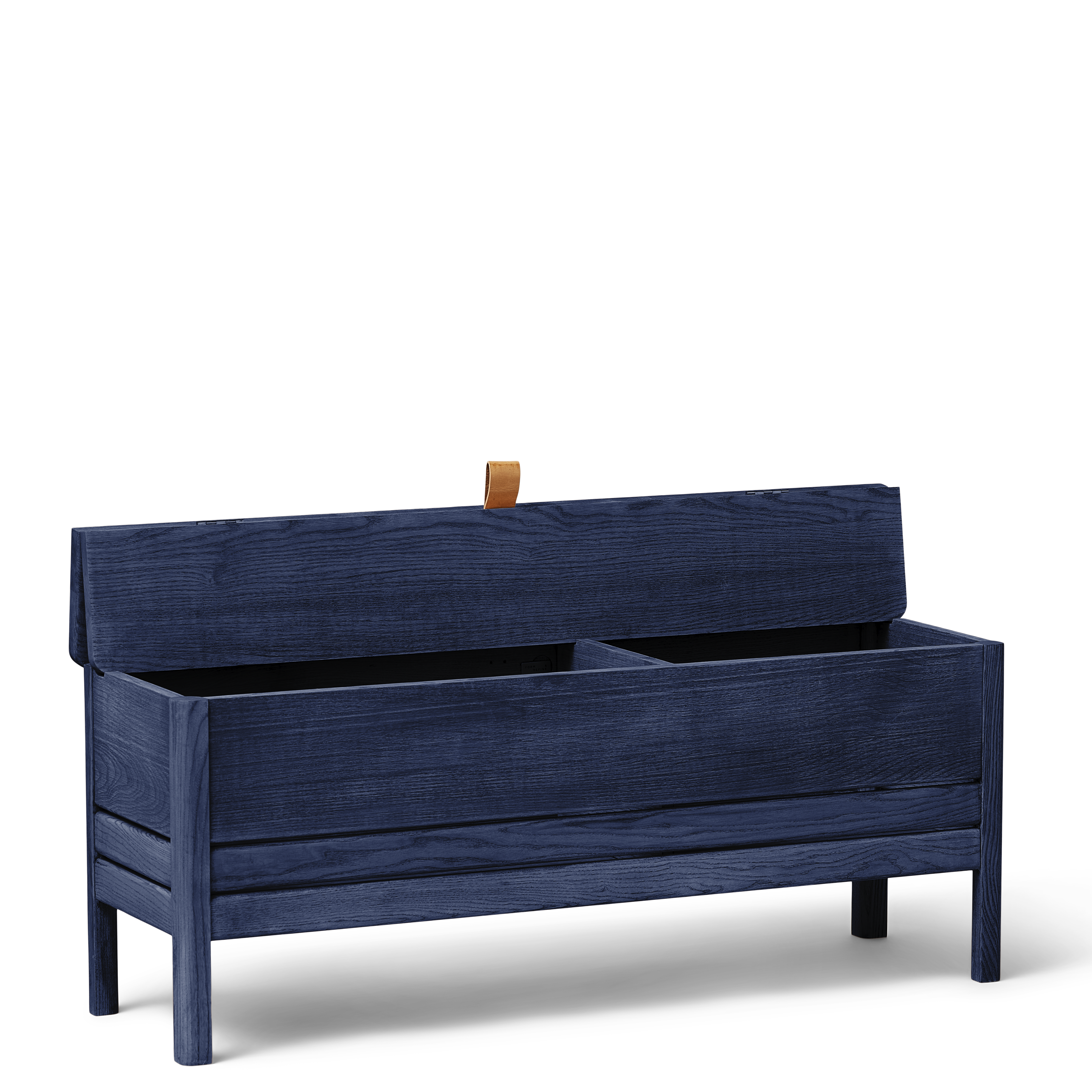 Den fantastiske A Line bænk fra danske Form & Refine er en opdateret version af den klassiske entré-bænk, hvor funktionalitet møder ren form. Bænkens låg løftes via et lille læderhåndtag, og konstruktionen holder låget på plads, mens den bruges. Den specialdesignede Indigo Blue-version tilføjer et unikt farvepift til entreen, stuen, soveværelset eller ethvert opholdsområde.