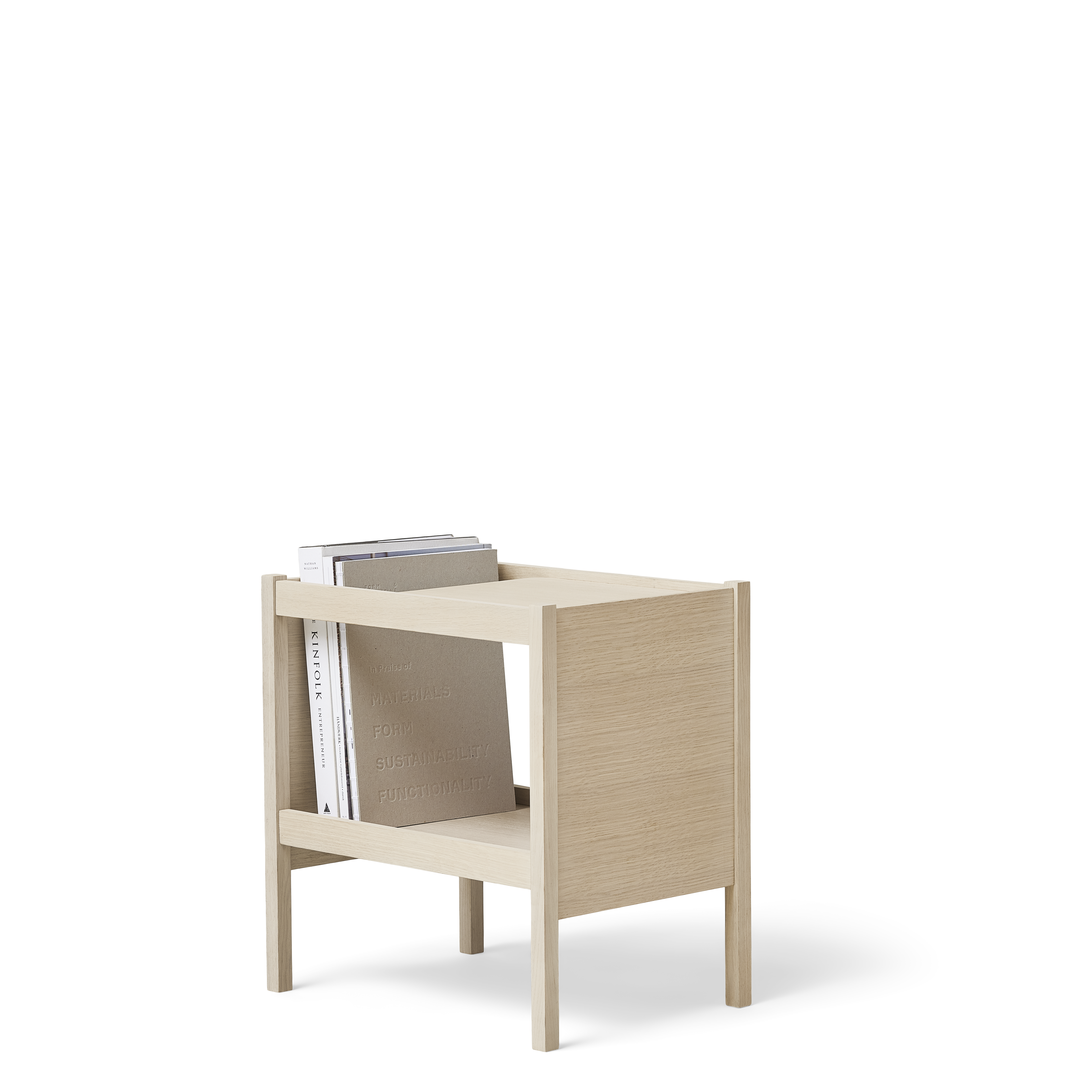 Journal sidebordet fra Form & Refine er et smukt og funktionelt sidebord i egetræ. Perfekt ved sofaen eller sengen til bøger, kaffe eller dekorative genstande.