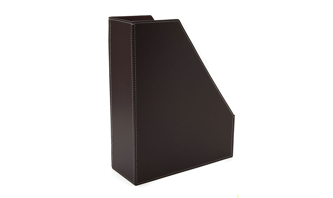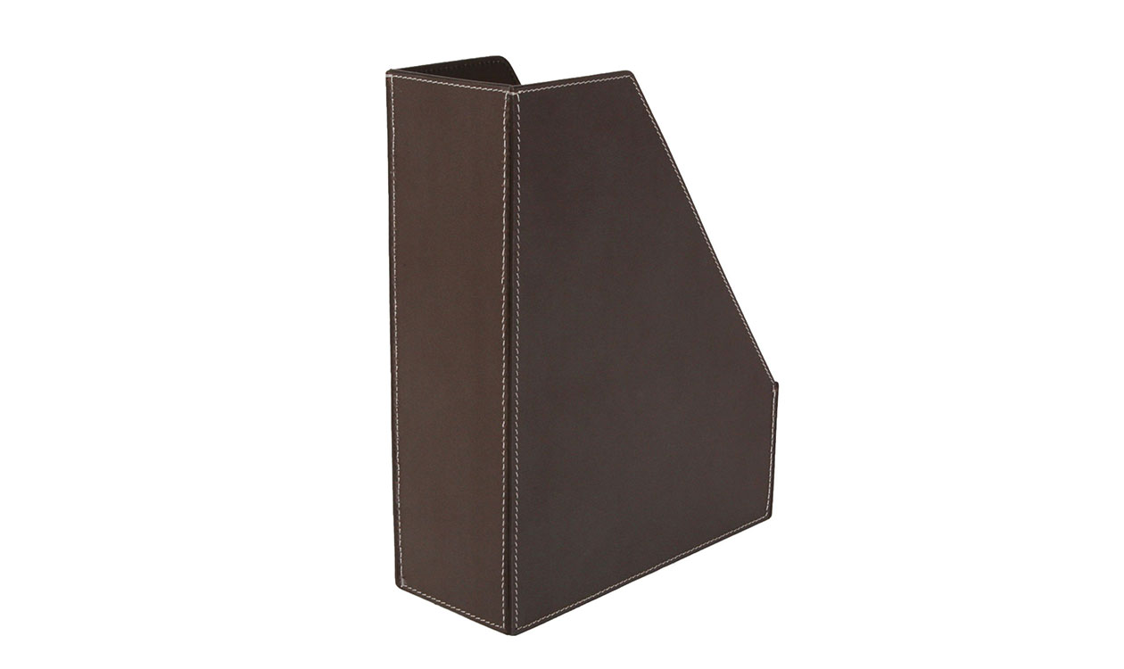 Rigtig flot tidsskriftholder i læder og i et tidsløst design, der passer ind i alle hjem. Står flot i reolen på kontoret.