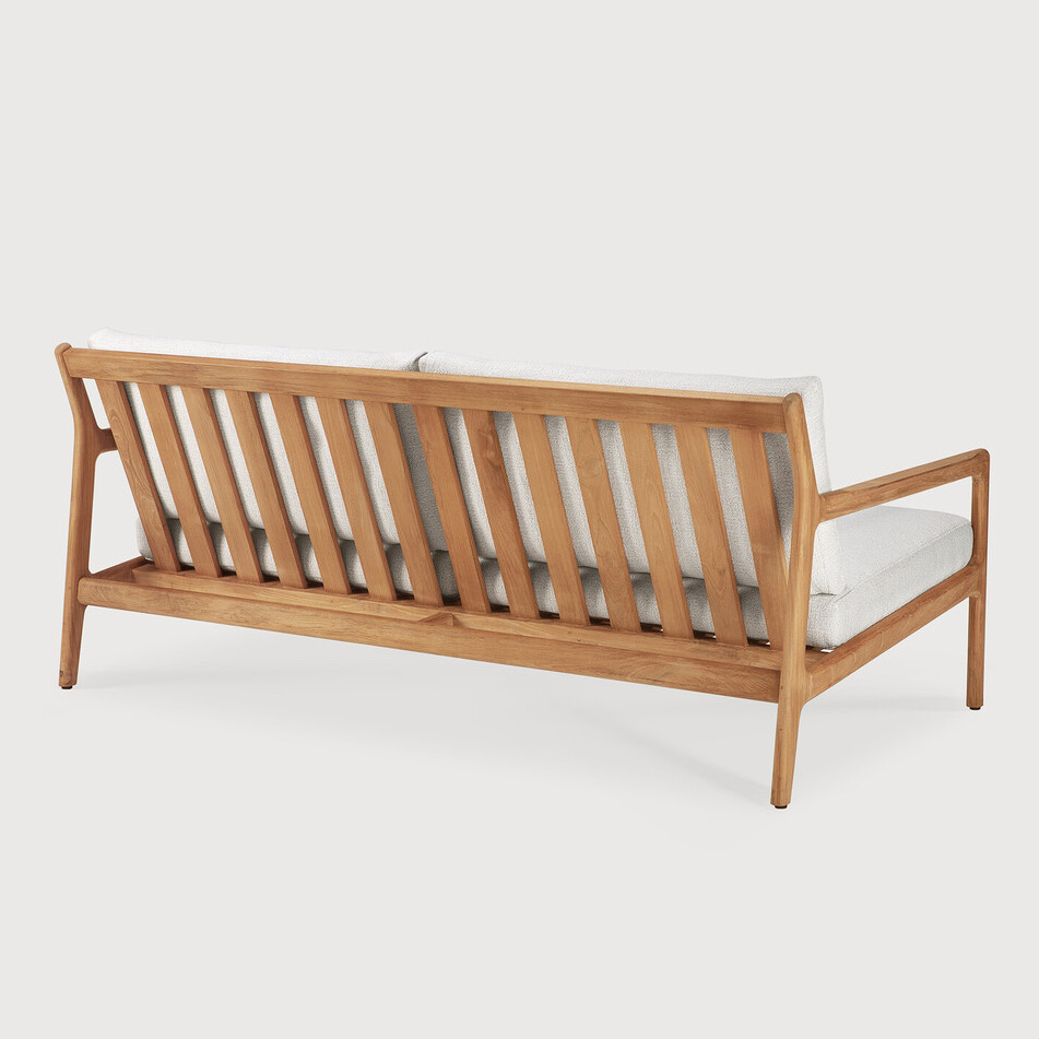 Teak Jack Outdoor Sofa fra belgiske Ethnicraft. Sofaen er designet af Jacques Deneff. Sofaen er designet til at se smuk ud fra enhver vinkel. Hynderne er syet i hånden i Belgien, og der er derfor garanti for et smukt stykke håndværk. Sofaen er en del af en kollektion, og man kan derfor matche den med andre ting fra denne kollektion.