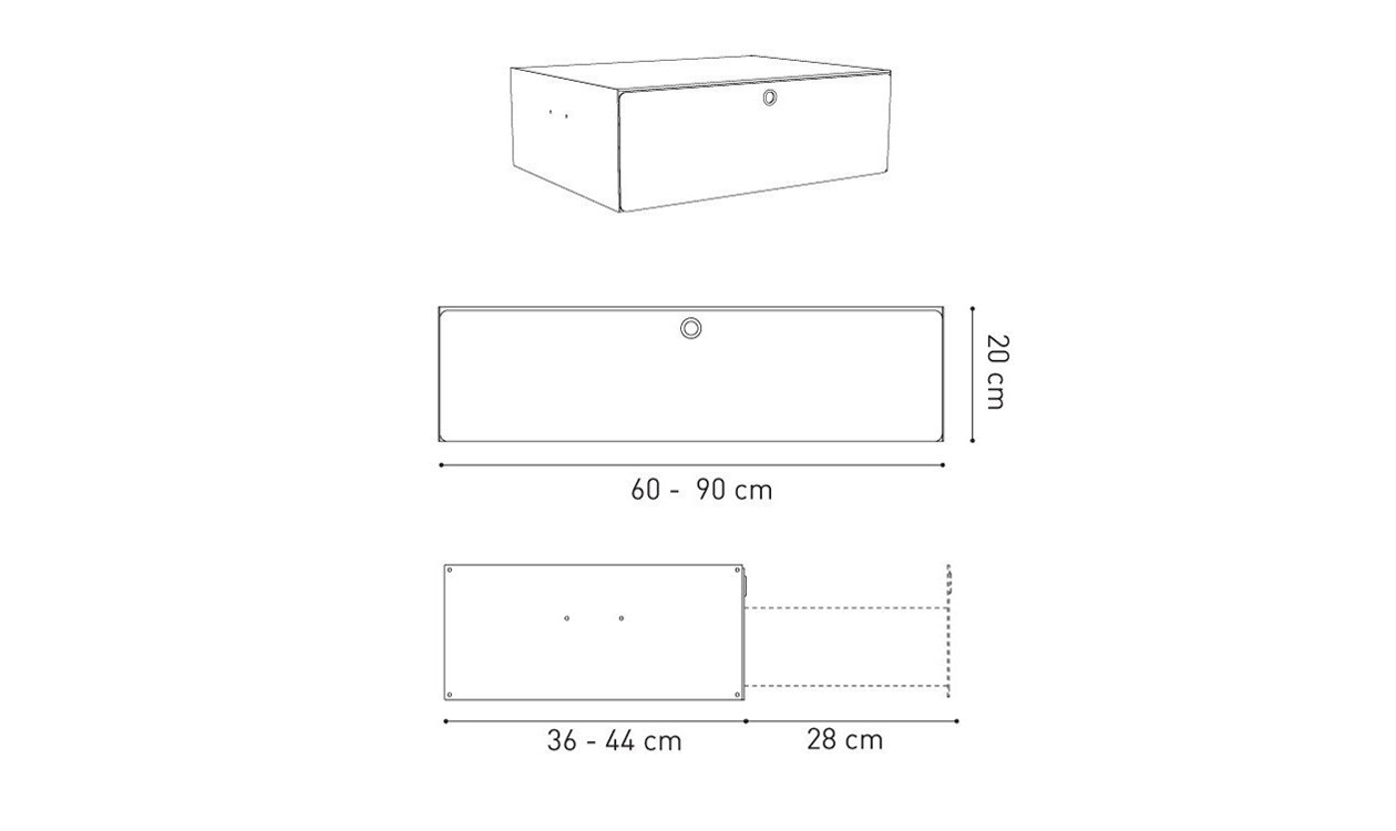 - Korpus er altid 36/44 cm og hertil skal lægges 3 mm for fronter i aluminium. Dette gør at det rent visuelt og æstetisk set er korpus og ikke fronter der flugter ved kompositioner hvor forskellige udgaver benyttes.
