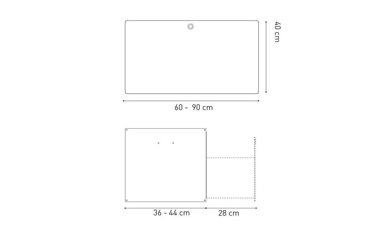 - Korpus er altid 36/44 cm og hertil skal lægges 3 mm for fronter i aluminium. Dette gør at det rent visuelt og æstetisk set er korpus og ikke fronter der flugter ved kompositioner hvor forskellige udgaver benyttes.