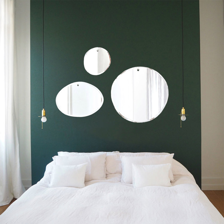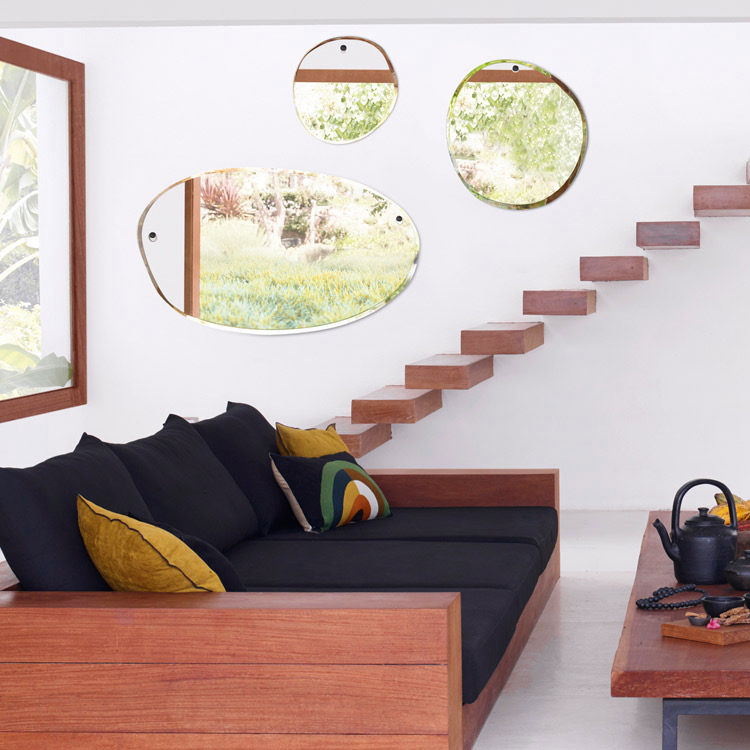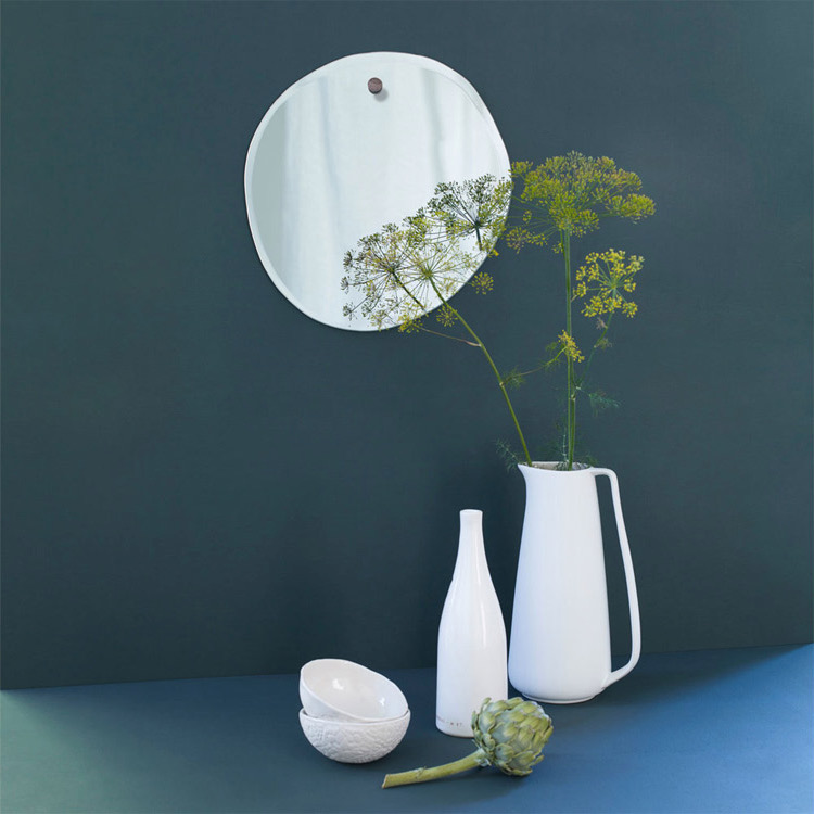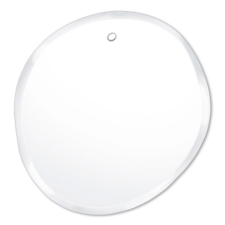 Organisk rundt spejl til badeværelset, stuen eller gangen. Spejlene fra M nuance er håndelavede og reflekterer smukt lyset rundt i rummet og skaber et let spil. Vælg mellem klar glas, gråtonet glas eller kobberfarvet glas.